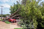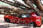 Campo Mourão (PR), 10/12/2025 - Rajada de vento derruba árvore em carro - Uma rápida rajada de ventos no final da manhã desta quarta-feira (10), em Campo Mourão, na Região Centro-Oeste do Paraná, derrubou uma árvore de grande porte em cima de um veÃculo estacionado em frente a uma escola, no bairro Jardim Alvorada. Na hora da queda da árvore, a proprietária estava no interior da escola lecionando. Não houve feridos. (Foto: Dirceu Portugal/Fotoarena/Agência O Globo) especiais